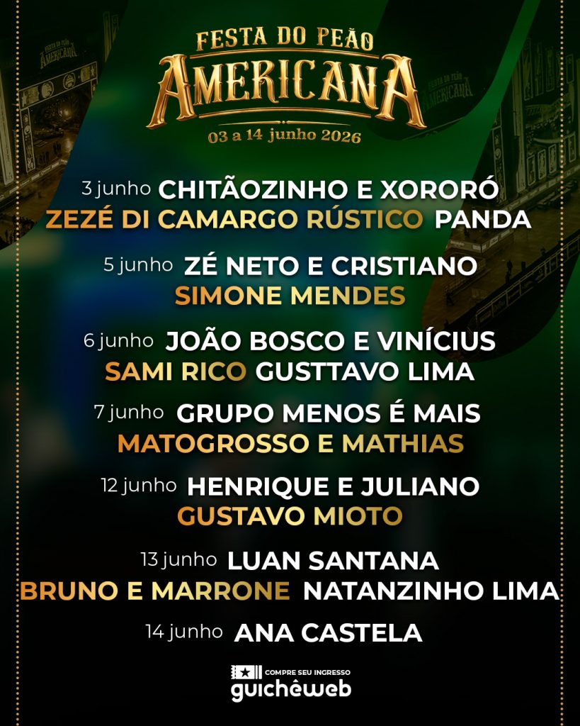 Com uma programação que une tradição, inovação e os maiores sucessos da música nacional, a 38ª Festa do Peão de Americana reafirma sua posição como um dos eventos mais importantes do Brasil. Mais do que um festival, é uma experiência completa — dentro e fora da arena — que promete emocionar, surpreender e fazer história mais uma vez.