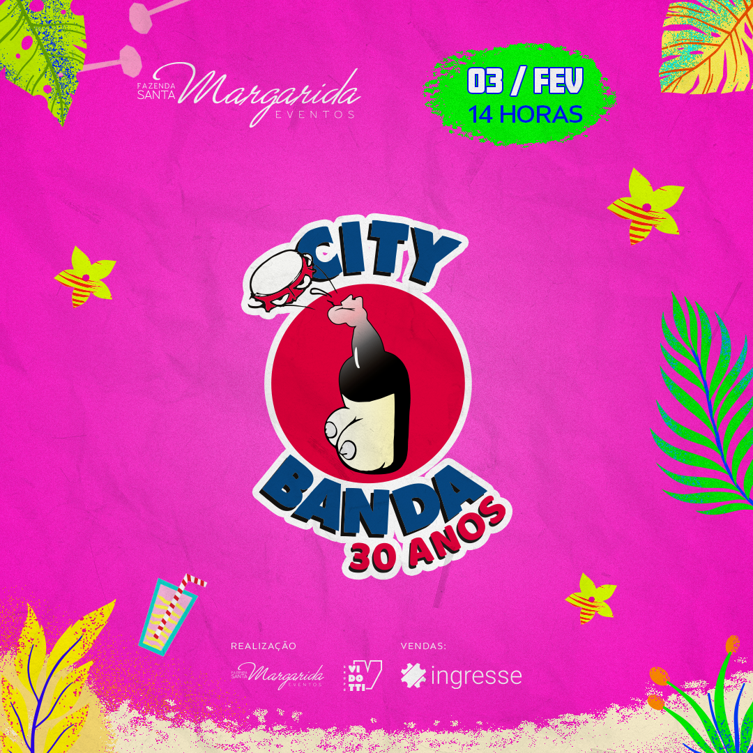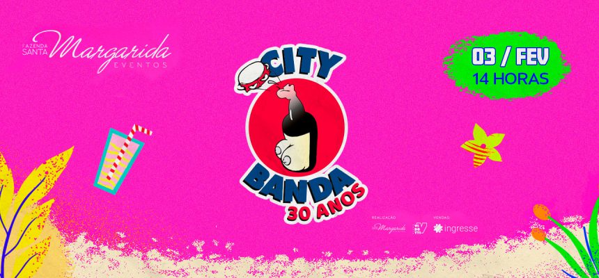 Celebrando em 2024, 30 anos de muitas alegrias, a City Banda vai esquentar e agitar o melhor pré-carnaval da cidade de Campinas no dia 03 de fevereiro. A festa vai acontecer na Fazenda Santa Margarida, local já conhecido por realizar grandes eventos. Os portões abrem às 14h. A realização é da City Banda e do Vidotti Eventos.