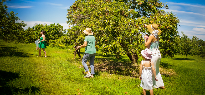 Além de conhecer de perto o cultivo da fruta, os visitantes vivenciam uma experiência típica de turismo rural, que valoriza o contato direto com a natureza